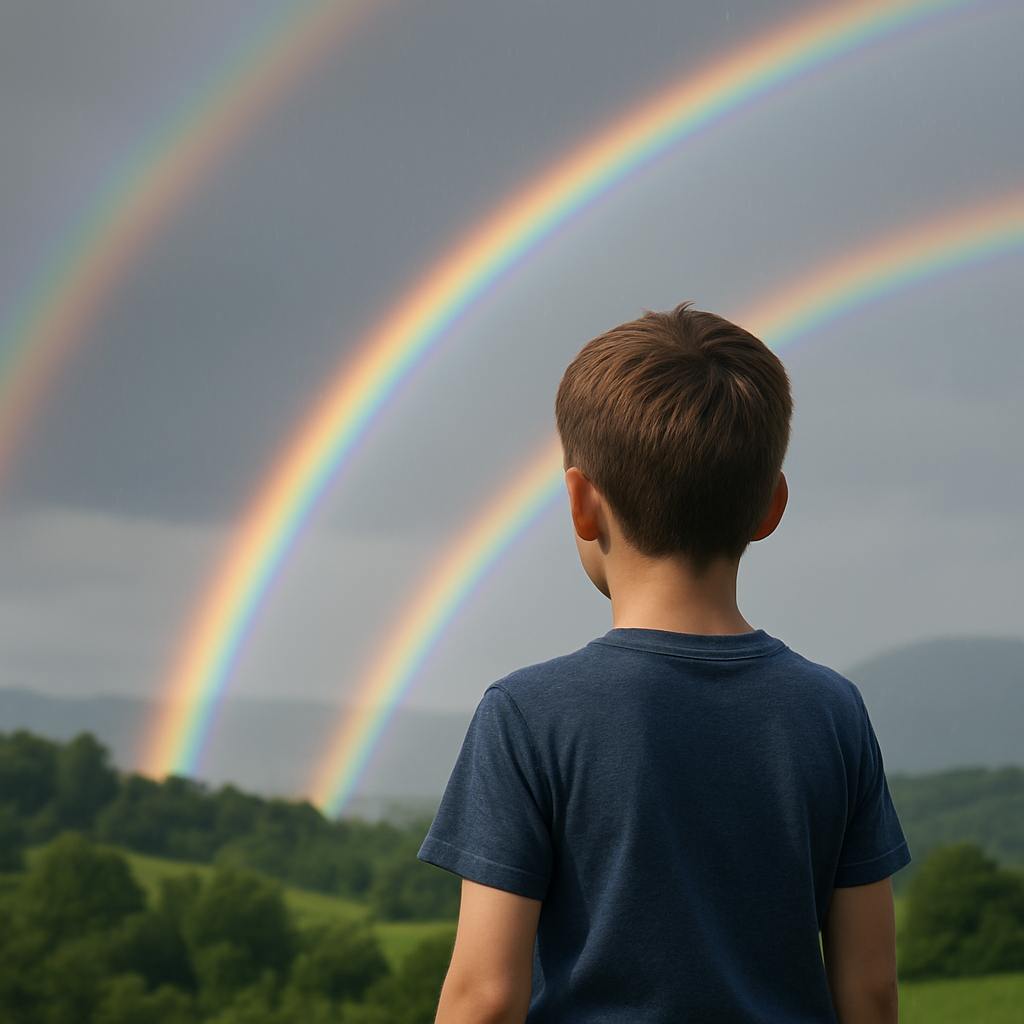 წვიმის წვეთებმა მზის სხივები აირეკლა და ერთი ცისარტყელა კი არა, ცაზე სამი ცისარტყელა ერთად დაანახა ლევანს. გაკვირვებული უყურებდა და აკვირდებოდა ფერებს, რომელთა სიმრავლემაც გააკვირვა. ძალიან მოსწონდა რკალად გაფერადებული ეს რამდენიმე ზეცის და მიწის ბილიკი და მის ყველა დეტალს იმახსოვრებდა, ფერების თანმიმდევრობას, სიმაღლეს, სიკაშკაშეს. თითოელ ფერს სათითაოდ თვალი რომ გააყოლა, ეგონა, რომ ფერადი ხაზებით დახატულ და აჟღერებულ მელოდიებს უსმენდა. საოცარი ჰარმონიაა, როცა უცქერ და გგონია რომ ცას უახლოვდები.